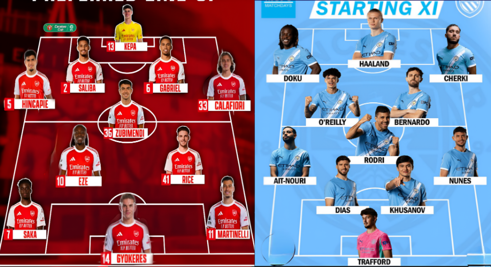 In the midfield, Declan Rice and Martin Zubimendi will form the double pivot. Eberechi Eze will take on the no. 10 position, while Bukayo Saka and Leandro Trossard will operate as the two wide forwards. Leading the attack for the North London side against Manchester City will be Viktor Gyokeres. Additionally, Kai Havertz, Gabriel Martinelli, and Odegaard will serve as substitutes on the bench for the Gunners.