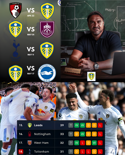 With 39 points already accumulated, Leeds find themselves in a strong position to evade relegation. Currently, they are eight points clear of Tottenham, who sit in 18th place. Tottenham managed to take the lead twice at home against Brighton on Saturday but ultimately dropped two points due to a last-minute equalizer from Georginio Rutter. In the unlikely scenario that Tottenham wins all five of their remaining matches, they would finish with 46 points, meaning Leeds could ensure their survival by earning eight more points—achievable through two wins and two draws. However, this would also necessitate both West Ham and Nottingham Forest to have outstanding finishes to the season as well.