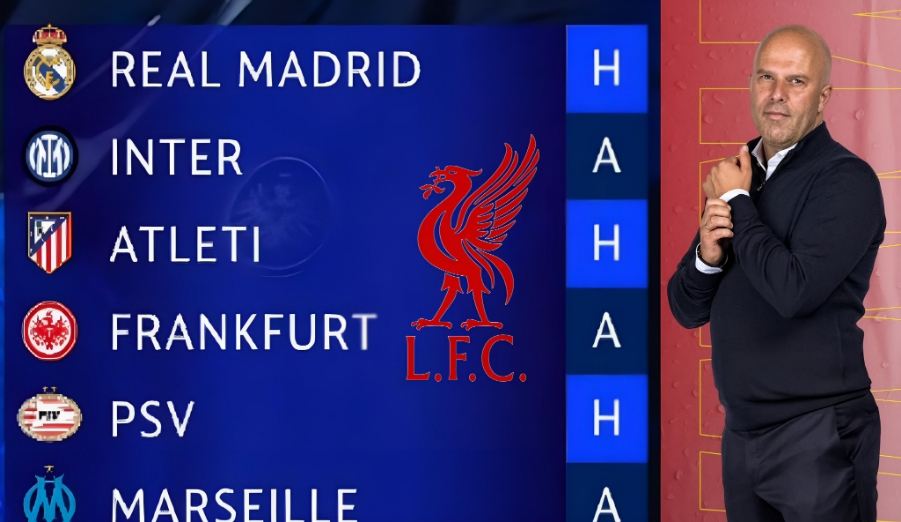 Inter Milan, Atletico Madrid, Eintracht Frankfurt, PSV Eindhoven, Marseille, Qarabag, and Galatasaray comprise the Reds’ eight Champions League matches.